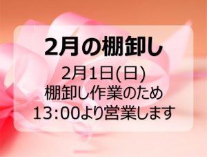 【お知らせ】2/1(日)棚卸しのため13:00より営業いたします